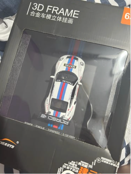 Incluye el coche en 3D. No es un póster ni una impresión plana: el modelo está integrado dentro del cuadro para crear un efecto realista y premium.